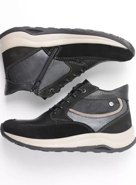 Af en toe een buitje? Daar maak jij je niet langer druk om! Deze stoere enkelhoge veterschoen is namelijk water resistant. Lopen gaat bijna vanzelf, de Scone WR is namelijk uitgerust met een geweldige zool: deze is dempend en heeft een oplopende neus, waardoor op een subtiele manier de afwikkeling van de voet wordt gestimuleerd. Het bovenwerk bestaat uit een combinatie van diverse leersoorten die prachtig bij elkaar passen. Dit geeft de schoen een luxe uitstraling. Zomer, winter, herfst of lente: je kunt erop uit!