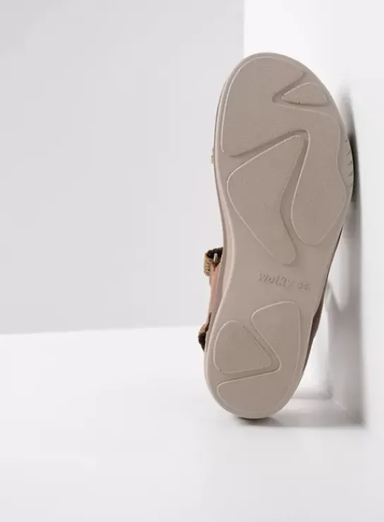 Alles om comfortabel van A naar B te komen, vind je terug in Wolky’s Acula. Deze sandaal is optimaal verstelbaar dankzij de vier klittenbandsluitingen: twee op de voorvoet, een op de wreef en een op de hiel. Het suède dekje op het voetbed zorgt ervoor dat de sandaal ultra-zacht aanvoelt. Het onderwerk is gemaakt van PU en in combinatie met het stevige (vaste) voetbed zorgt dit voor een goede demping. Hierdoor kun je moeiteloos langere afstanden afleggen. Heb je de gevlochten bandjes al gezien? Die geven de sandaal een chique uitstraling. Dit vlechtmateriaal zit alleen bovenop. Het gedeelte dat je voeten raakt is van zacht leer. Je hoeft dus niet bang te zijn voor een vlechtwerk in je huid!